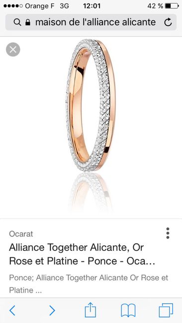 Nous sommes allés essayer des alliances aujourd'hui, nous avions une idée assez précise de ce que nous voulions : de l or blanc comme la première photo.Et chéri me propose d essayer de l'or jaune, allons y ! Et là, gros doute ! Photo 2.. Je ne sais...