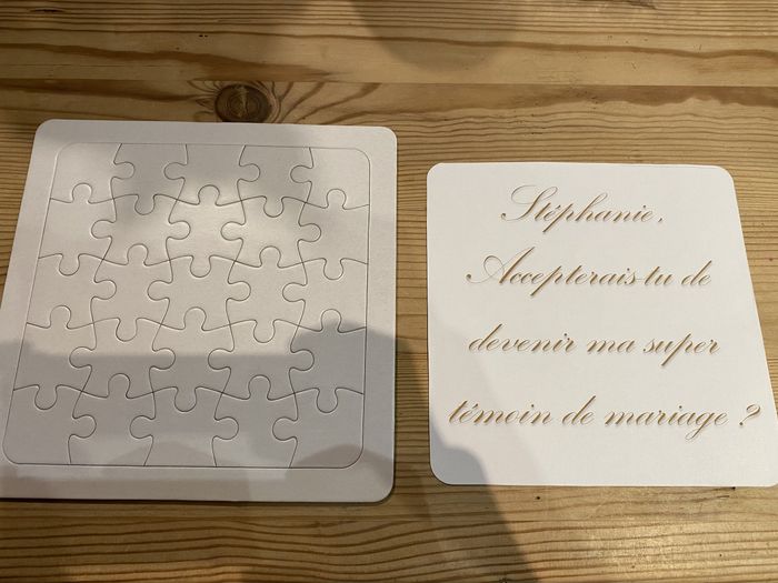 Coucou la commu ! J’espère que vous allez bien en cette période si particulière. Alors voilà je sèche sur mon DIY puzzle pour faire ma demande aux 2 témoins que j’ai choisi.J’ai acheté 2 puzzles vierges, faits normalement pour être peints, sur...