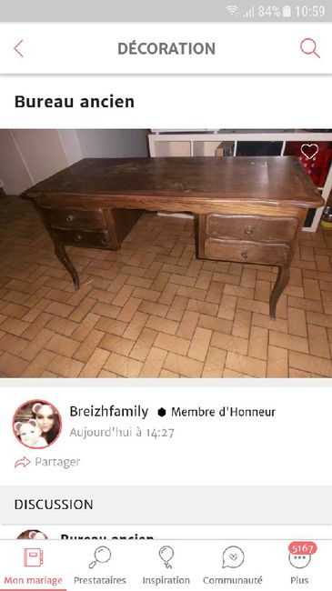Coucou la commu. Petit essai ce matin pour notre Candy bar et livre d'or. Le Candy bar est trop petit, mes parents ont.une ancienne machine à coudre singer où il y a une table donc la deuxième partie du Candy Bar sera dessus. Pour le livre d'or il...