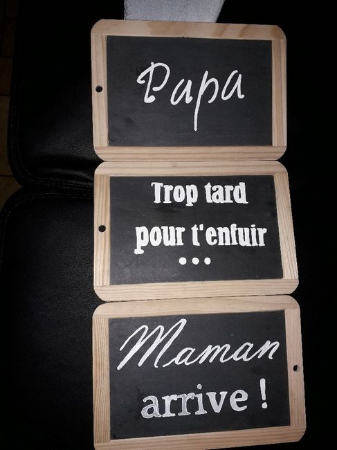 Bonjour à tous ! J'espère que vous allez bien. Je voulais savoir qui a fait un panneau du style : "T'inquiètes pas papa, maman arrive ! " ? Je souhaiterai en faire un moi-même mais je ne sais pas comment m'y prendre. Sur quel support ? ... J'attends...