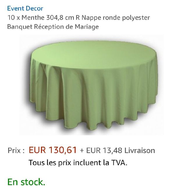 Bonjour à toutes et à tous, Premier message que je publie ici, je ne sais pas si ça pourra m'aider mais je tente Je bloque totalement sur le choix de mes nappes... Nous avons des tables rondes de diamètre 150 et 180. Nous cherchions dans un 1er...