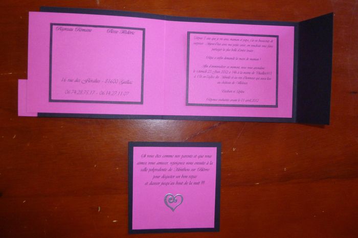 Salut à tous!! Par curisosité je me dermandais quel faire part avez vous choisi (photo)??? et quand on dit vos invités pour ceux et celles qui les ont déjà envoyés? Nous avons repéré un modele qui nous plait, simple et moderne...