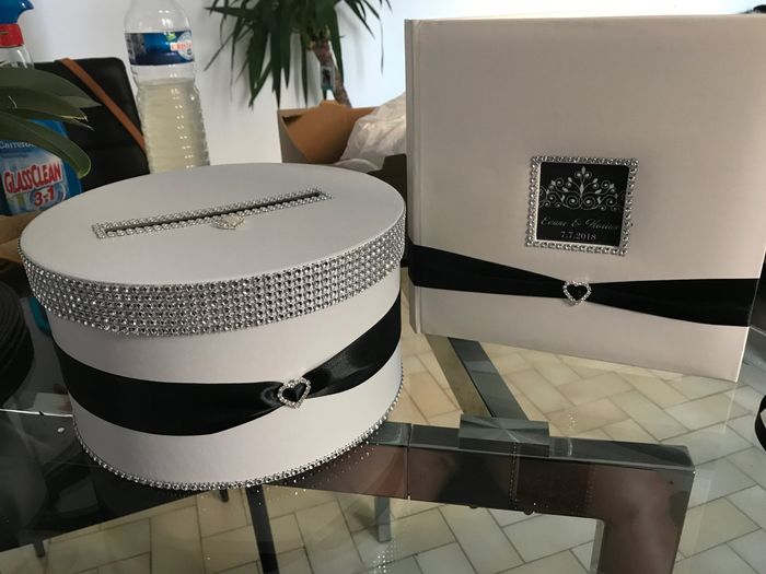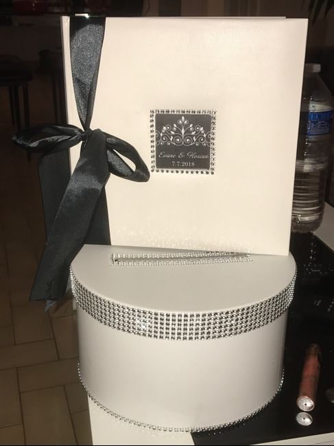 Je partage avec vous mon urne et mon livre d'orLoin d'être finis mais je suis contenteNotre thème "Baroque Chic black and white"Chéri me prend pour une folle a déjà commencé la deco pour juillet 2018 ^^
