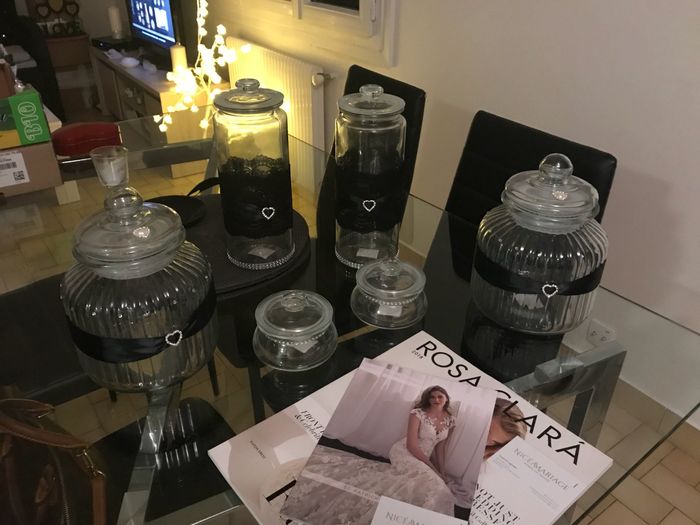 Voilà mes 6 bonbonnières !Je mettrais également un gâteau de bonbons style pièce montéeThème baroque chic black and white !