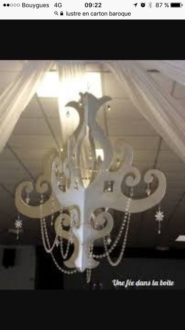 Coucou les brides!Je recherche ce genre de lustre en carton à monter soi mêmeSi jamais vous en trouvez sur des sites je suis preneuse !Mon thème est baroque chic