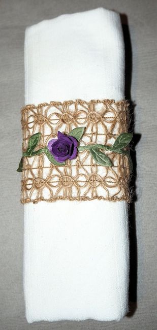 Salut la communauté, J'ai demandé à ma belle mère de me coudre mes ronds de serviette. J'ai rajouté dessus le ruban feuille et une fleur violette, qu'en pensez-vous ? Les couleurs diffèrent entre les photos car elle viennent d'être prises à la...
