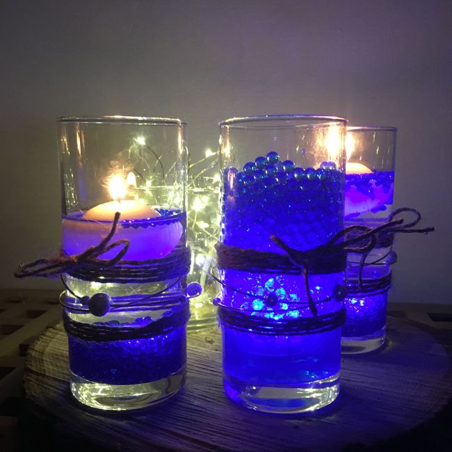 Coucou la commu , Je viens chercher vos impressions, j'ai acheté pas mal de déco table que nous reutiliserons plus tard dans notre chez nous mais voilà il faut absolument Fleurir nos tables. J'ai commandé de jolis vases dans notre code couleurs bleu...