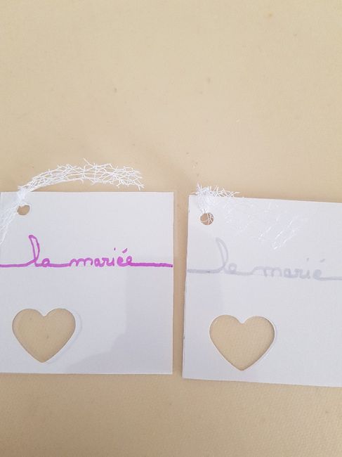 Aujourd'hui j'ai un peu avancée (trop contente du résultat) voici mon fanion (les lettres se suivront) et mon livre d'or (Au milieu je mettrai des alliances entremêlées) vous en pensez quoi ?
