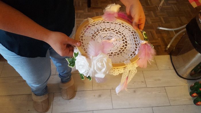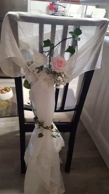Hello !! Bah voilà mes fleurs reçus de tonton Ali alors essai pour mes chaises qui sont dans le même style que celle de mon salon mais en bois pour aller dans le thème champêtre !! J au fais l essai avec un rideau blanc mais en vrai ça sera avec du...
