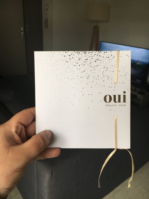 Il y a 2967 joursBonjour , J’ai reçu nos faire-parts ce matin, ils sont superbes et en plus de ça le site c’est trompé et nous en a envoyé 10 en plus 😁 que du bonus . Maintenant atelier montage . Je vous met la photo du premier que j’ai monté à la va vite .