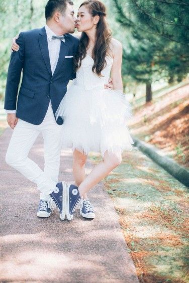 Et oui c'est la grande tendance du moment .... Les baskets pour les mariées! Il est vrai que les talons c'est vite inconfortable! et les baskets donnent une petites touche de Fun en plus ... Perso, je pense mettre des baskets après la ceremonie...