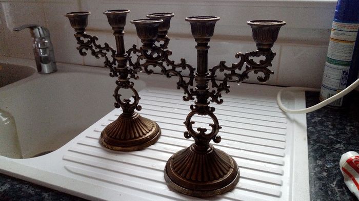 Petit tour en brocante. .et hop...deux chandeliers pour ma table d'honneur... Par contre comment les nettoyer ?