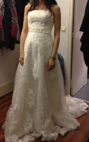 Bonjour les filles, Je cherche une robe dans ce style pour la cérémonie religieuse: Couleur ivoire ou champagne Avez-vous des idées?