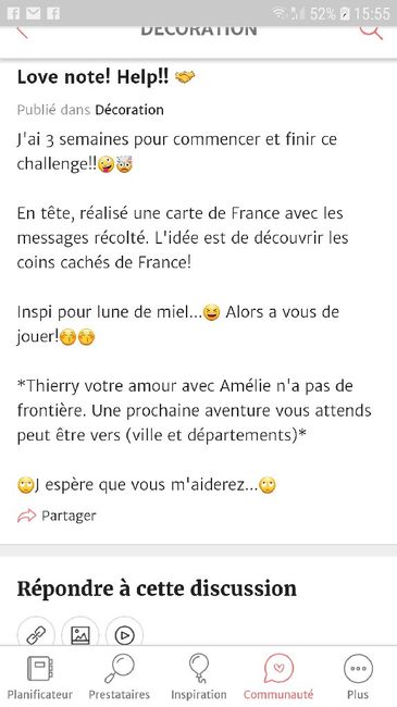 Bonjour tout le monde, je relance un post afin de rĂ©cupĂ©rer un maximum de love note pour mon mariage le 29 juin 2019. Je vous demande de lâaide đđŒ Jâaimerais beaucoup en avoir Ă©galement dâautre pays que la France car je trouve ça juste wahou đ Ma...
