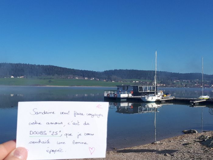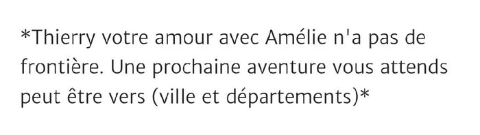 Bonsoir, Voilà , je souhaiterai faire la surprise à mon futur de faire voyager notre amour partout, dans toutes les régions,pays.. Mon petit mot serait Sandrine veut faire voyager votre amour, c'est de ( votre endroit), que je vous souhaite ( ce que...