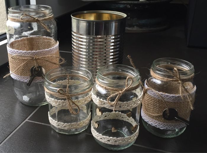 Il y a 2614 joursDéco champêtre, les grandes bouteilles pour la table du vin d'honneur, des pots en verre avec les moulins à vent pour la table des enfants, et les tables de invités et des mariés fleurs. Roses blanche, roses pâle, et petite verdure. Préparation de la...