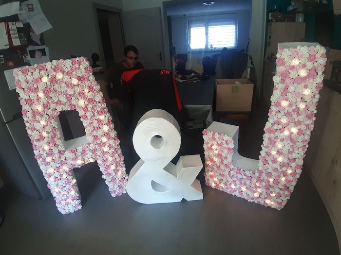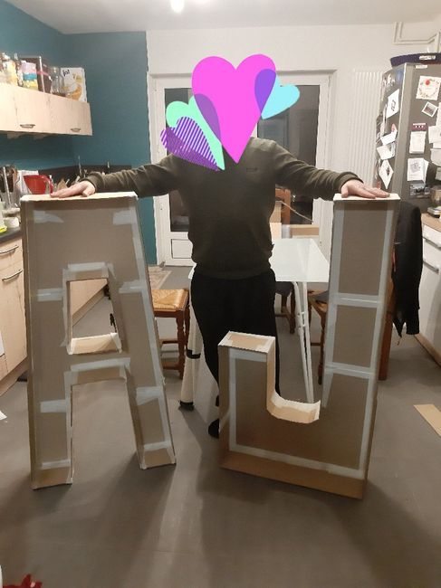 Chéri et mii nous sommes lancés dans un nouveau bricolage ce week-end...la réalisation de nos initiales en carton de 1,20m de haut...au final, elles seront remplies de fleurs artificielles et de leds... Prochaine étape, nous allons recouvrir tout ça...