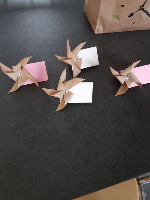 Coucou, Hier mercredi, atelier découpage et assemblage avec mon fils aîné. On a créé les marque place pour la table des enfants. J'étais parti sur une idée de moulin à vent maintenu avec une paille en carton .. ce fut un échec total, le moulin ne...