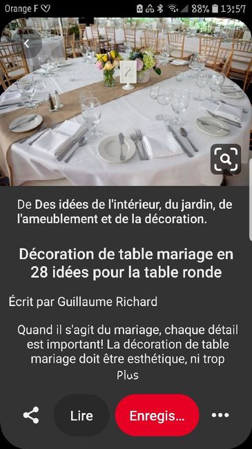 Bonjour les futur(e)s marié(e)s ! Je suis a la recherche d'idées déco qu'on puisse faire sans que ça coûte trop cher et je voulais savoir comment vous faites avec les chemins de table sur des tables rondes ? Y a t'il des chemins de table rond qui...