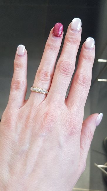 Coucou, comme le titre le dit, ça y est nos alliances sont arrivées 😍, ça me donne trop envie d'être au jour J. Elles sont gravées en chiffre romain à notre date, et à l'intérieur nos initiales sont gravées.