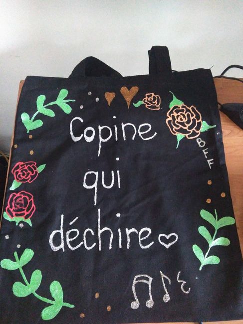 Hello, Voici la fin de mon enieme projet de la preparation du mariage : les tote bags temoins! j'en ai fait 5 : 2 pour mes témoins, deux pour mes demoiselles d'honneur et 1 pour ma maman parce qu'elle adore les arts créatifs et qu'elle merite la...