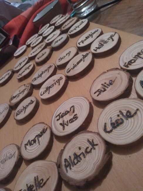 Hello les filles, Je crois que je n'ai jamais fait autant de panneaux que depuis ma préparation mariage : La totalité faite main dans la confection des supports que dans les écritures.... Peinture ou pyrograveur.. Voici les 3 panneaux pour la salle...