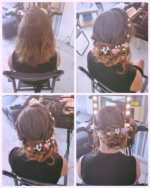 Coucou les filles j'ai fais mon essai coiffure et j'aimerais des avis. Merci les filles Pas facile de gérer tous ca la tête froide pendant cette période