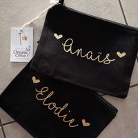 Il y a 2166 joursAprès les totes bag, voici les pochettes que j'ai fait personnaliser à leur prénom.