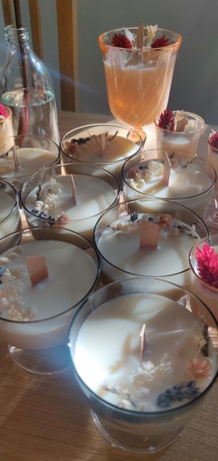 Coucou voilà je recommence à m y remettre gentiment après 3 reports 🙃 je voudrais offrir des bougies avec des fleurs séchées mais je n arrive pas à trouver des contenants sympas et pas chers je suis preneuse d idées merci à tous 😀