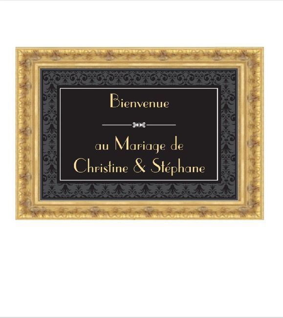 Voici une simulation de notre cadre de bienvenue... Il y aura des fleurs fraîches dessus. J ai chiné le grand cadre doré dans une brocante
