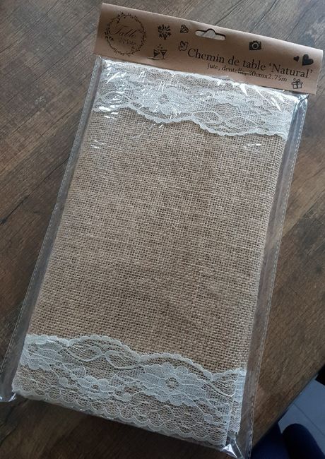 Cc les fm, bon plan à l'incroyable! Chemin de table jute dentelle! 2m75 sur 30cm pour 4€99. Sachant que d'occasion sa se vend au alentours de 6€/7€ j'ai sauter sur l'occasion! Mon futur va râler mariage prévu en juillet 2021. Bises à toutes