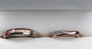 Ça y est on sort du salon de l'Alliance ; au début mon chéri était un peu perdu et moi je voulais tout 😂 au final a force d'essayer moi qui partait sur du trois ors je suis restée sur de l'or blanc ciselé et lui du bicolore ! Franchement c'était top...