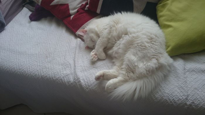 coquinou snow en mode marmotte lol comme vous le voyez il est du genre curieux ^^ il enchaine quelques bétises genre tombé dans le bassin a poisson ce matin , grimper tout en haut des arbres , et il mange comme un ogre ^^ Une dde nos féline a donné...
