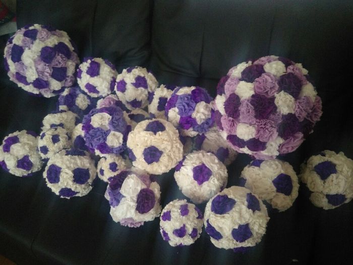 Voilà ma première boule de fleur en papier crépon. Plus que 19 a faire pour mettre sur les chaises de chaque côté de l'allée de la cérémonie laïque. En fait il me reste beaucoup de boulot.
