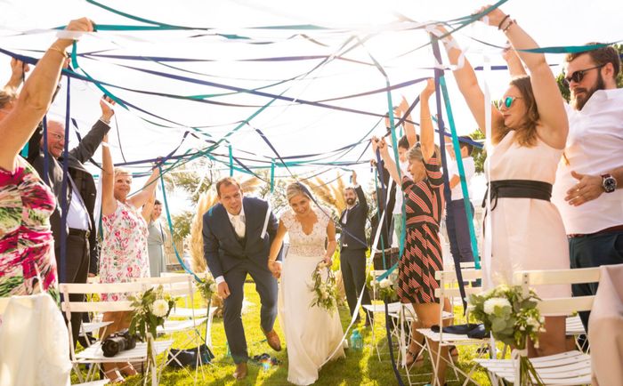 Coucou, à tous, et à toutes, notre mairie, nous interdit les pétales qu’elles soient vraies ou fausses et n’autorisent que des choses qui ne retombe pas au sol. Au départ, nous souhaitions de vraies pétales séchées, mais pour le coup nous sommes...