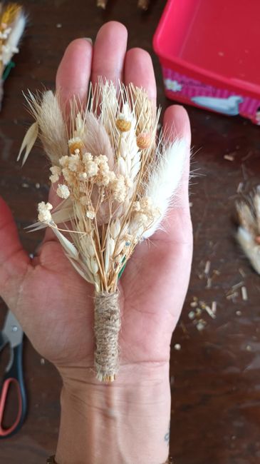 Coucou à toutes!! A 36 jours du mariage j'ai un gros doute sur les boutonnières que j'ai moi-même confectionné... j'ai peur qu'elles soient trop grosses 😒 qu'en pensez-vous? avez-vous une idée de la taille que doit avoir une boutonnière? Les miennes...