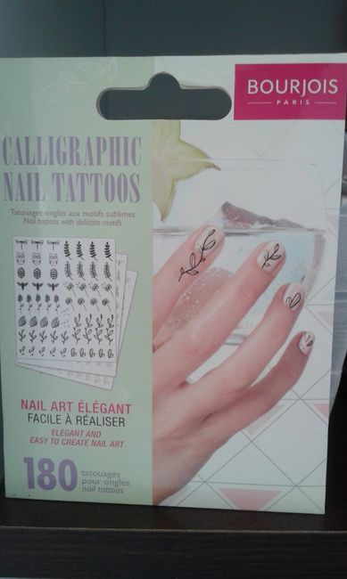 Le premier essai des ongles (avec ma belle-soeur) n'étant pas concluant j'ai décidé de me faire faire une simple french manucure par l'esthéticienne qui fera mon maquillage. Pour autant j'avais envie d'ajouter une petite touche sympa sur l'annulaire...