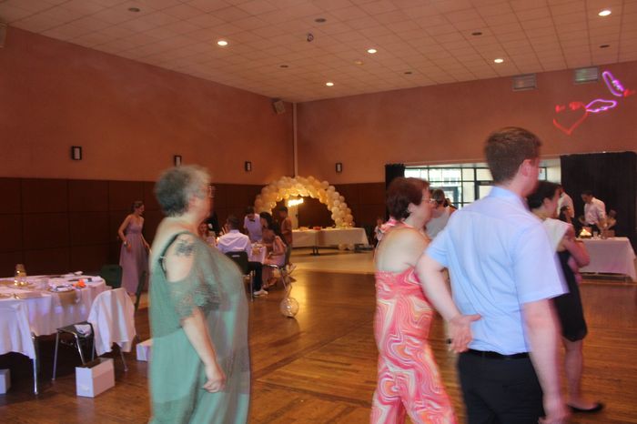 1ere surprise de la part de notre DJ. Notre DJ nous avait promis plusieurs surprise et cela a commencer par une haie d'honneur avec un couper de ruban à le très de la salle. Une belle façon de faire découvrir la salle et la décoration à nos invités....
