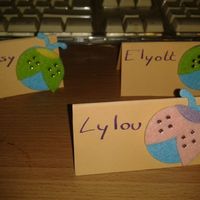 Il y a 3940 joursVoila a quoi ressemble mes marque place! marque place définitif les pommes de pins pour les hommes et les papillon-bois pour les femmes