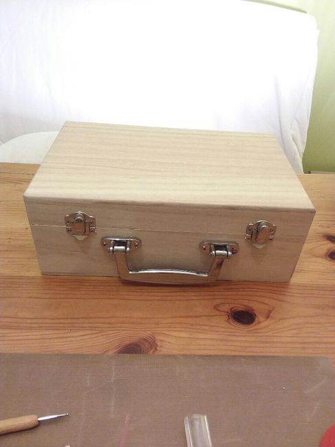Voici le début de mes kits témoins. J'ai habillé cette valise basic trouvé à cultura. Décoration intérieure pas encore mise. Le temps de tout devisser, mettre le papier et revisser, cela m'a pris bcp de temps. Dedans, elles auront le livret du...
