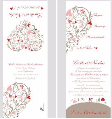 Coucou, bon voilà, cette après-midi j'ai fait un petit tour sur les sites de faire-parts. Et du coup, j'ai personnalisé un faire part (que j'aime plutôt bien) avec son carton réponse pour voir ce que ça rend. Nos couleurs sont rouge et blanc pour le...