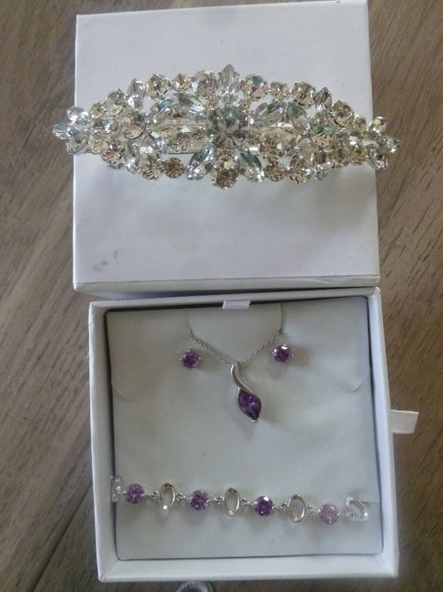 Voilà ma parure et mon bijou cheveux qu' en pensez vous? Mariage violet argent et blanc Bijoux