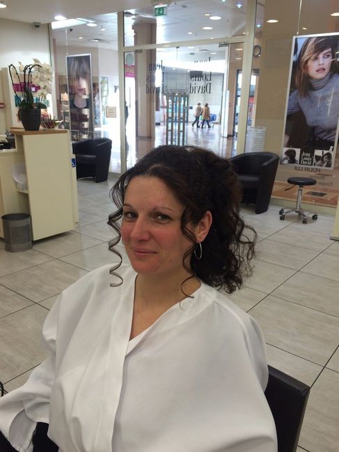 Aujourd'hui c'était journée spéciale : essayage de MA robe pour les 1ères retouches (les photos sont là si vous voulez voir) et donc j'en ai profité pour faire mes premiers essais coiffure, maquillage et manucure. Je vous laisse découvrir en images...