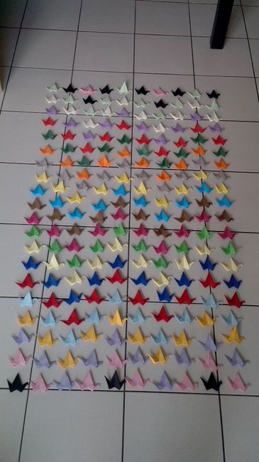 A y est ! J'ai fini ! Ca m'a pris pas mal de soirée, mais elles sont finies ! J'ai essayé de les disposer dans mon salon pour voir ce que ça donne mais il était trop petit donc il n'y a que 780 grues sur la photo. J'ai suivi l'ordre des papiers sur...