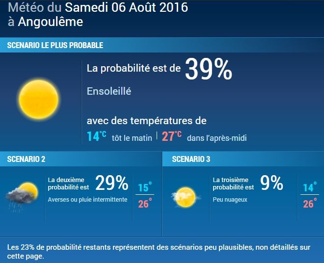 Coucou les filles. J'ai découvert qu'il était possible de consulter les probalitités météorologiques 365 jours à l'avance. http://www.lachainemeteo.com/previsions-meteo-a-365-jours.php On est bien d'accord pour dire qu'il y a 100% de chance...