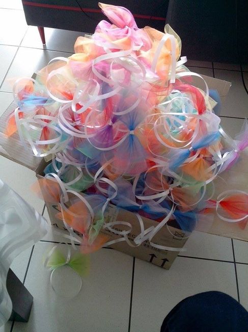 Aujourd'hui, j'ai fait des essais pour les noeuds de voiture. J'ai commandé le tulle sur Aliexpress. Points positifs : les couleurs sont sublimes, ultra fashy comme j'aime. Le prix est ultra mini. Points négatifs : le tulle est enroulé sur lui-même,...