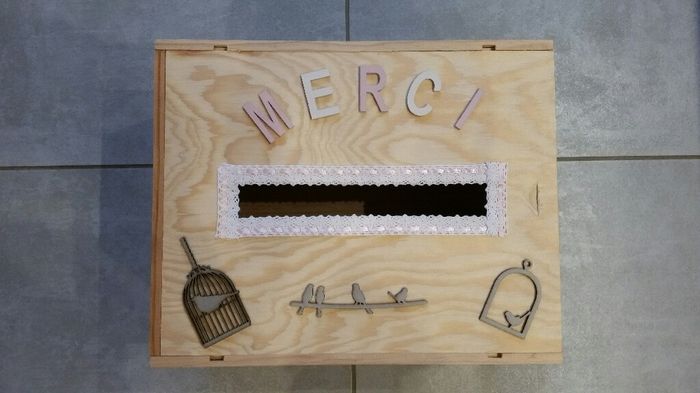 Debut de mon urne je vais peindre les lettres en blanc et rose et chéri doit faire l'ouverture