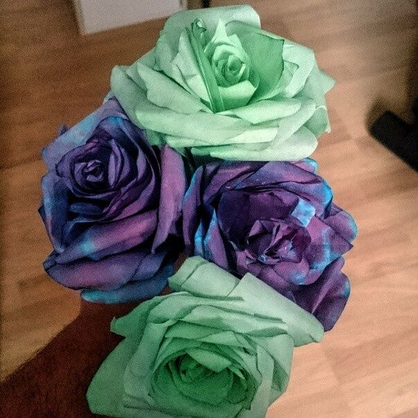 Voilà ma 2ème fleur (la première mal scotchée, énervée dessus, bref moche ) qu'en pensez vous ? trop ouverte ? pas assez ? j'avoue j'ai galéré ^^ Pour info, je fais un bouquet pour le lancer elle est violine, j'ai fait la couleur en colorant...