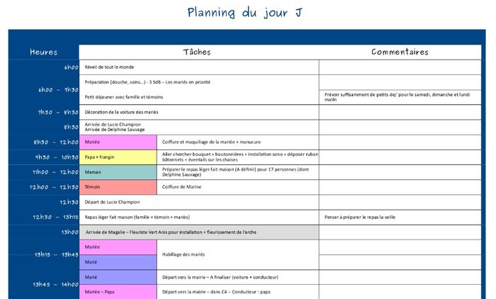 Bonjour à toutes et tous, Je viens de faire mon planning du jour J. Qu'en pensez-vous ? Ai-je pensé à tout ? C'est stressant de se dire que c'est ce bout de papier qui va "guider notre journée". Il ne faut pas que j'oublie des moments qui pourrait...
