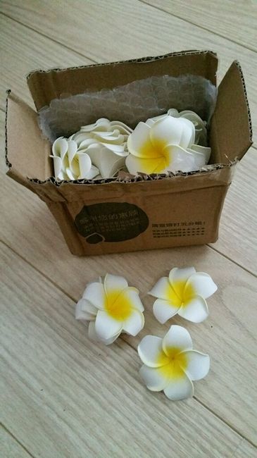 Hier livraison de ma seconde commande aliexpress des fleurs des îles mousse et....rien à dire très contente de la qualitée livraison en 15 jours ! Prochaine commande les contenants à dragées plexiglas et petites fioles en verre !